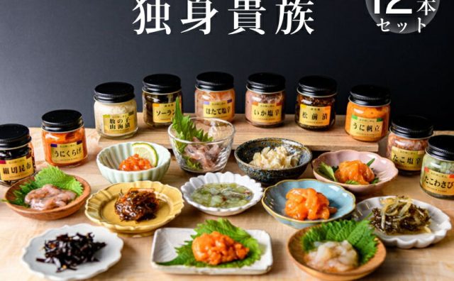 おつまみ・珍味【ふるさと納税】独身貴族 12本 生珍味 詰め合わせ 小瓶 1本約40g 食べきり 少量サイズ 晩酌 松前漬 いか塩辛 いかうに数の子 うにくらげ ソーラン漬 細切昆布 数の子山海漬 ほたて塩辛 たこ塩辛 うに帆立 たこわさび 化粧箱入り 冷蔵 北海道 函館市 送料無料