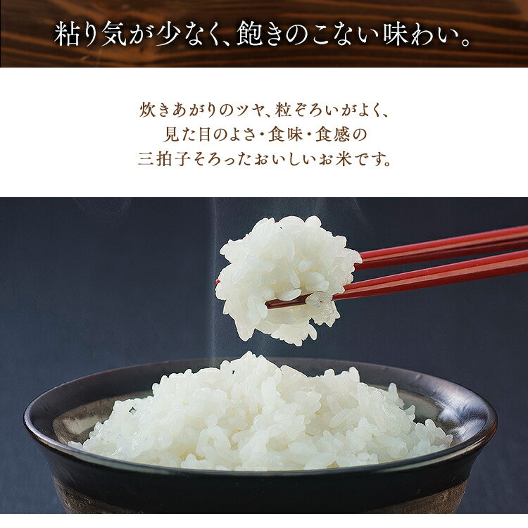 炊きあがりのツヤ、粒ぞろいがよく、見た目のよさ・食味・食感の三拍子そろったおいしいお米です。