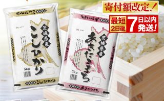 豊かな水源に恵まれ、隠れたお米の名産地として知られる五泉市。クリアで良質な阿賀野川の水を使って栽培したコシヒカリは、粘り気が強くもっちりとして、強い甘みを感じられます。