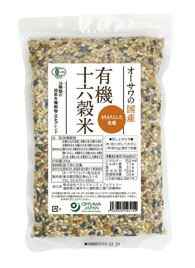 ・国内産原料100% ・16種類の穀物・豆をブレンド ・雑穀の自然な甘み ・米1合に対して大さじ1杯(約12g)混ぜて炊飯 ○原材料:有機もち玄米(栃木産)、有機もち麦・有機もち黒米・有機発芽玄米・有機はだか麦・有機うるち玄米・有機もち赤米・有機発芽はだか麦・有機焙煎玄米・有機とうもろこし・有機黄大豆・有機もちあわ・有機玄はと麦・有機はと麦・有機黒大豆・有機青大豆(熊本県)国内産有機100% 有機もち玄米・もち麦・もち黒米・発芽玄米・黄大豆・うるち玄米・もち赤米・とうもろこし・はだか麦・焙煎玄米・もちあわ・ひえ・もちきび・ハト麦・黒ささげ・なた豆(熊本産)
