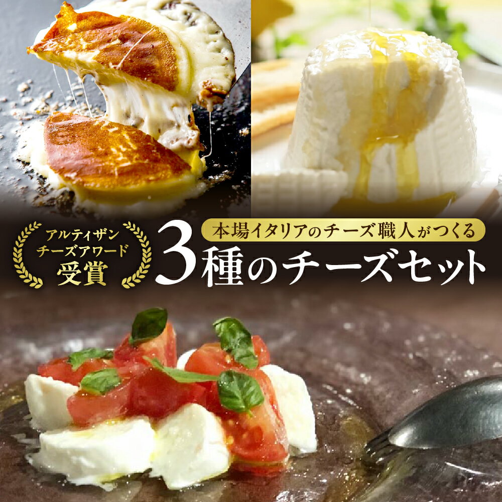 「金賞受賞チーズセット」は、Japan Cheese Award’14金賞&All Japan ナチュラルチーズコンテスト’19金賞を受賞したリコッタ、Japan Cheese Award’14金賞のカチョカヴァロ、アンティザンチーズアワード’24の優秀賞(SUPER GOLD)モッツァレラが入ったセットです。