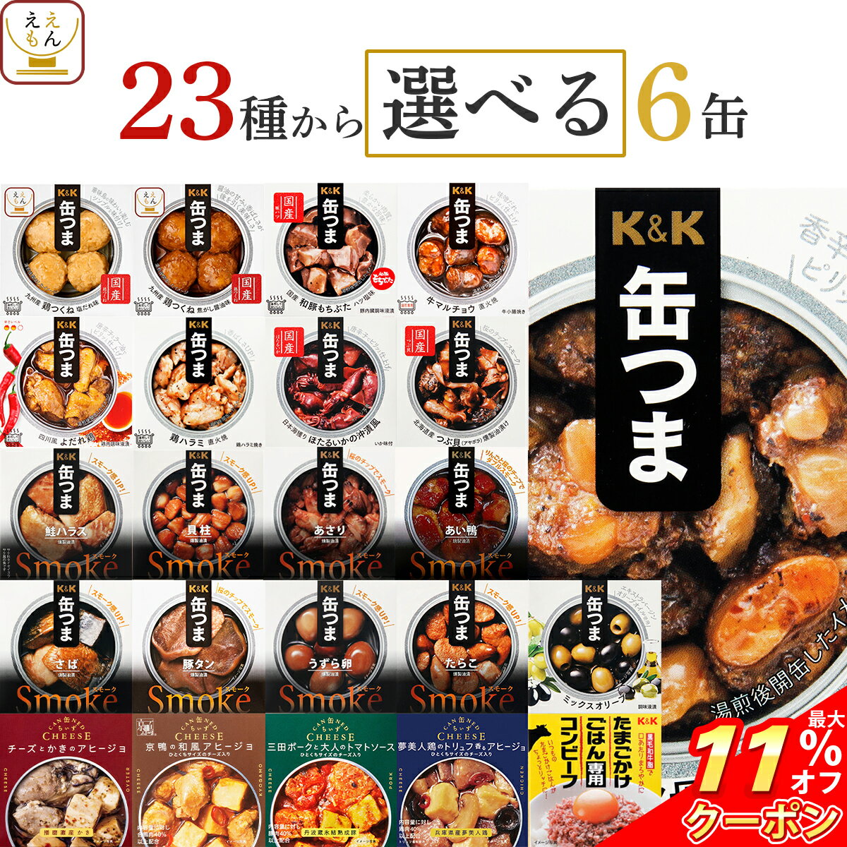 2025年3月19日に商品内容をリニューアルしました 変更前 缶つま 国産 牛すじ 煮込み 75g 缶つま 日本近海獲り 和風 サーディン 105g 変更後 缶つま 牛マルチョウ 直火焼 50g 缶つま 国産 和豚もちぶた ハツ塩味 45g 缶つま 北海道産 つぶ貝燻製油漬け 35g 缶つま スモーク たらこ 50g 缶ちぃず チーズ と かき の アヒージョ 85g 缶ちぃず 三田ポーク と大人の トマトソース 75g 缶ちぃず 京鴨 の 和風 アヒージョ 75g 内容量 缶つま 四川風 よだれ鶏 75g 缶つま 鶏ハラミ 直火焼 50g 缶つま 国産 豚軟骨 直火焼 40g 缶つま 牛マルチョウ 直火焼 50g 缶つま 国産 和豚もちぶた ハツ塩味 45g 缶つま 北海道産 つぶ貝燻製油漬け 35g 缶つま 日本海獲り ほたるいか 沖漬け 風 70g 缶つま ミックスオリーブ 60g たまごかけごはん専用コンビーフ 80g 缶つま 九州産 鶏つくね 焦がし醤油味 65g 缶つま 九州産 鶏つくね 塩だれ味 65g 缶つま スモーク 鮭ハラス 50g 缶つま スモーク 貝柱 50g 缶つま スモーク たらこ 50g 缶つま スモーク あさり 40g 缶つま スモーク さば 50g 缶つま スモーク あい鴨 70g 缶つま スモーク 豚タン 50g 缶つま スモーク うずら卵 25g 缶ちぃず チーズ と かき の アヒージョ 85g 缶ちぃず 三田ポーク と大人の トマトソース 75g 缶ちぃず 京鴨 の 和風 アヒージョ 75g 缶ちぃず 夢美人鶏 の トリュフ 香る アヒージョ 70g 23種類の中から6缶お選びいただけます。
