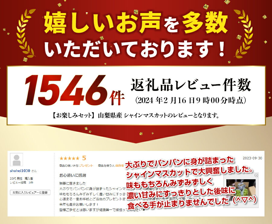 ショップトップ > カテゴリトップ > 寄付金額で選ぶ > 5,000円〜 【2024年】シャインマスカット ※2024年8月下旬から10月下旬頃のお届けとなります。