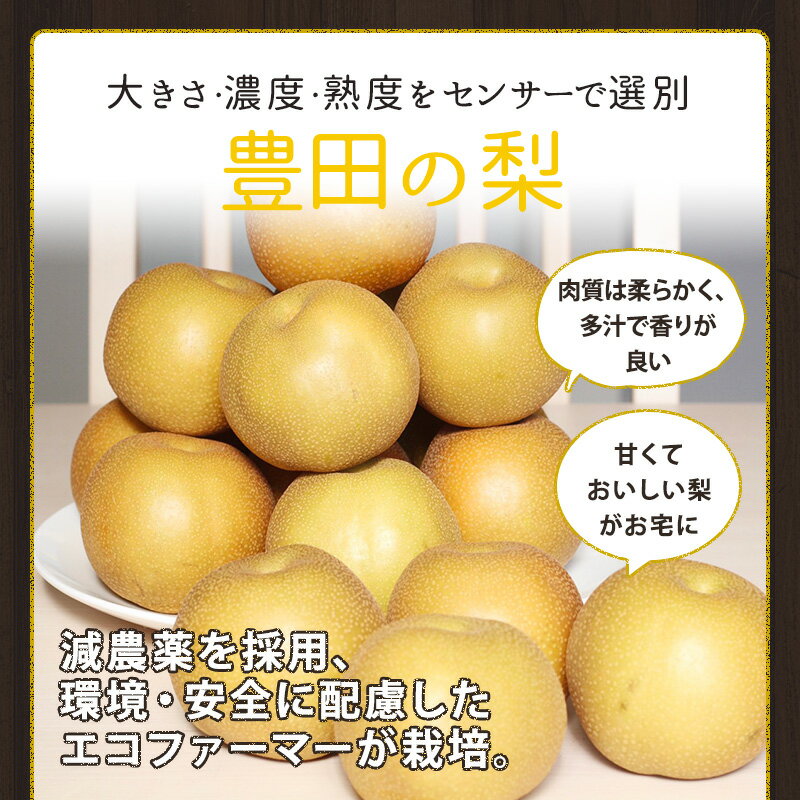 商品詳細 豊田の梨 特徴 肉質は柔らかく、多汁で香りが良い。