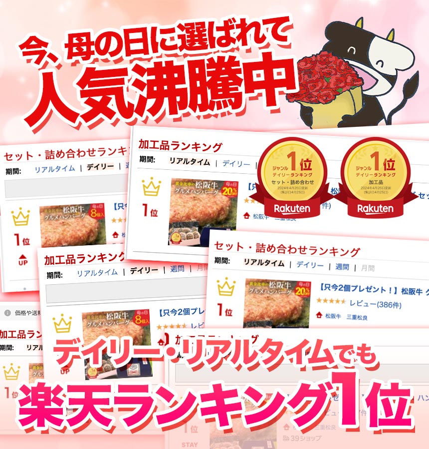 松良 名物 の 松阪牛 ハンバーグ 松阪牛グルメ ハンバーグ 牛タン ハンバーグ は是非お試しいただきたい看板メニュー! 楽天グルメ大賞受賞 や 楽天ランキンング 楽天うまいもの大会 ジョップオブザマンス など 受賞回 たくさんのお客様に支えられて松良は今も 松阪牛 の 訳あり メガ盛り 切り落とし 鉄板焼き 焼肉 松阪牛ハンバーグ ハムギフト などの お試し価格 も販売しております。