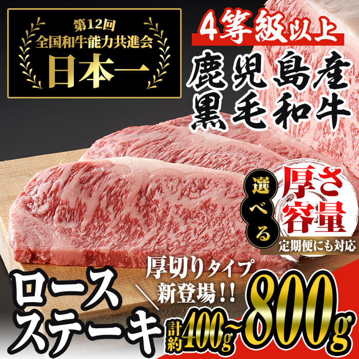製品仕様 商品名 内容量が選べる 鹿児島県産黒毛和牛ロースステーキ+ゆず胡椒付 産地名 鹿児島県産 アレルギー 牛肉 内容量 ・鹿児島県産黒毛和牛ロースステーキ ・ゆずこしょう:1個 (鹿児島県産4等級以上、曽於市特産柚子使用) <1回配送> 【通常カット】 【2枚セット:計約400g・約200g×2枚】 or 【3枚セット:計約600g・約200g×3枚】 or 【4枚セット:計約800g・約200g×4枚】 【厚めカット】 【2枚セット:計約400g・約200g×2枚】 or 【4枚セット:計約800g・約200g×4枚】 <定期便・全3回> 【計約2.4kg・約200g×4枚×3回】 or <定期便・全5回> 【計約4kg・約200g×4枚×5回】 ※ご入金確認後、翌月より【毎月29日(ニクの日)頃】にお届け 賞味期限 発送後30日以上 保存方法 冷凍保存 加工業者 株式会社ナンチク 鹿児島県曽於市末吉町深川61-2 商品説明 ●畜産王国、鹿児島県の誇る黒毛和牛は、きめ細やかな肉質とまろやかなコクが格別です!! ●ゆずの風味漂うゆずこしょうでお召し上がりください!! 畜産王国「鹿児島県」!! 和牛の生産地である鹿児島県で育てられた、鹿児島県が全国、いや世界に誇る『鹿児島県産黒毛和牛』は、とてもきめ細やかな肉質と、まろやかでコクのある旨みが特徴の高級和牛です。