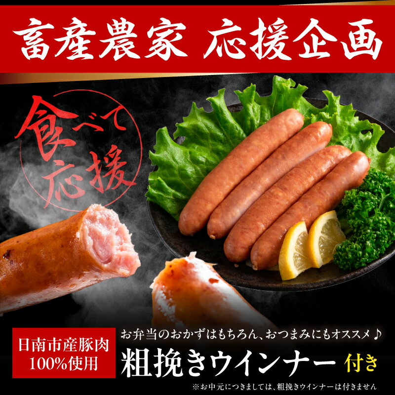 内容量 ●計500g(500g×1パック) or 計1kg(500g×2パック) \畜産農家応援/ 粗挽きウィンナー 90g×1袋付き (日南市産豚肉使用) ※お中元には、粗挽きウインナーは付きません。
