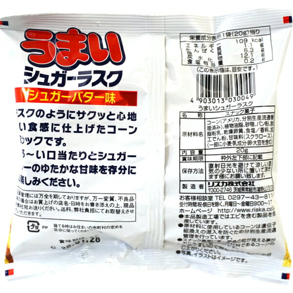 ご存知うまい棒シュガーラスクを一口サイズの小袋にしました。