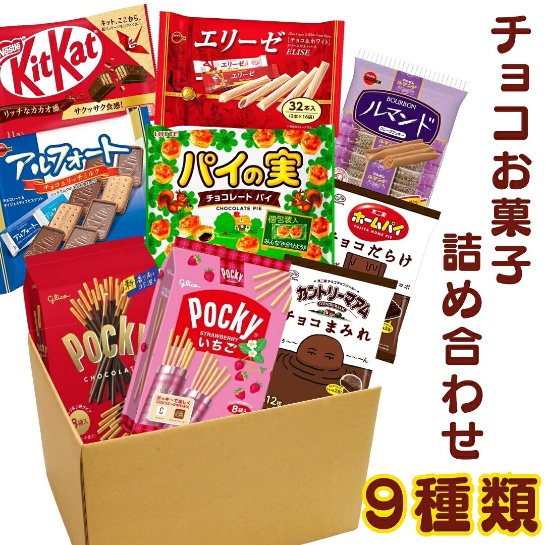 🍬 商品説明 みんなが知ってる定番チョコを9種類まとめてお届け! アルフォート、エリーゼ、ルマンド、パイの実、キットカット、チョコまみれ、チョコだらけ、ポッキー/いちごポッキーなど、 人気者だけを詰め合わせた“間違いないセット”です。