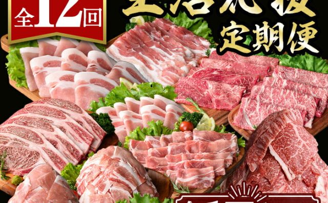 【ふるさと納税】【定期便12回】豚・牛が交互に届く生活応援定期便(合計17.5kg) 肉 豚肉 牛肉 霜降り すきやき しゃぶしゃぶ スライス 生姜焼き 豚バラ 切り落とし 焼肉 冷凍 ロース カタロース 肩ロース BBQ アウトドア コンシェルジュ【サンキョーミート株式会社】