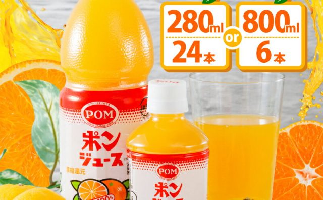 飲み物【ふるさと納税】 ポンジュース 800ml×6本 / 280ml×24本 果汁100% 国産 温州みかん オレンジジュース 飲料 ドリンク みかんジュース ご当地 ギフト お土産 人気 おすすめ 朝食 子供 家族 健康 美容 ビタミンC 常温保存 大容量 愛媛県 松山市 POM えひめ飲料 送料無料